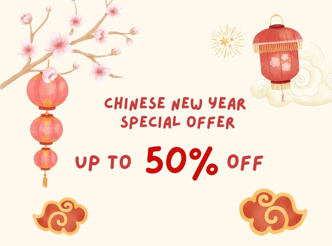 Celebrate the joy of the season with our Chinese New Year Special Offer - enjoy up to 50% OFF on your favourite picks!