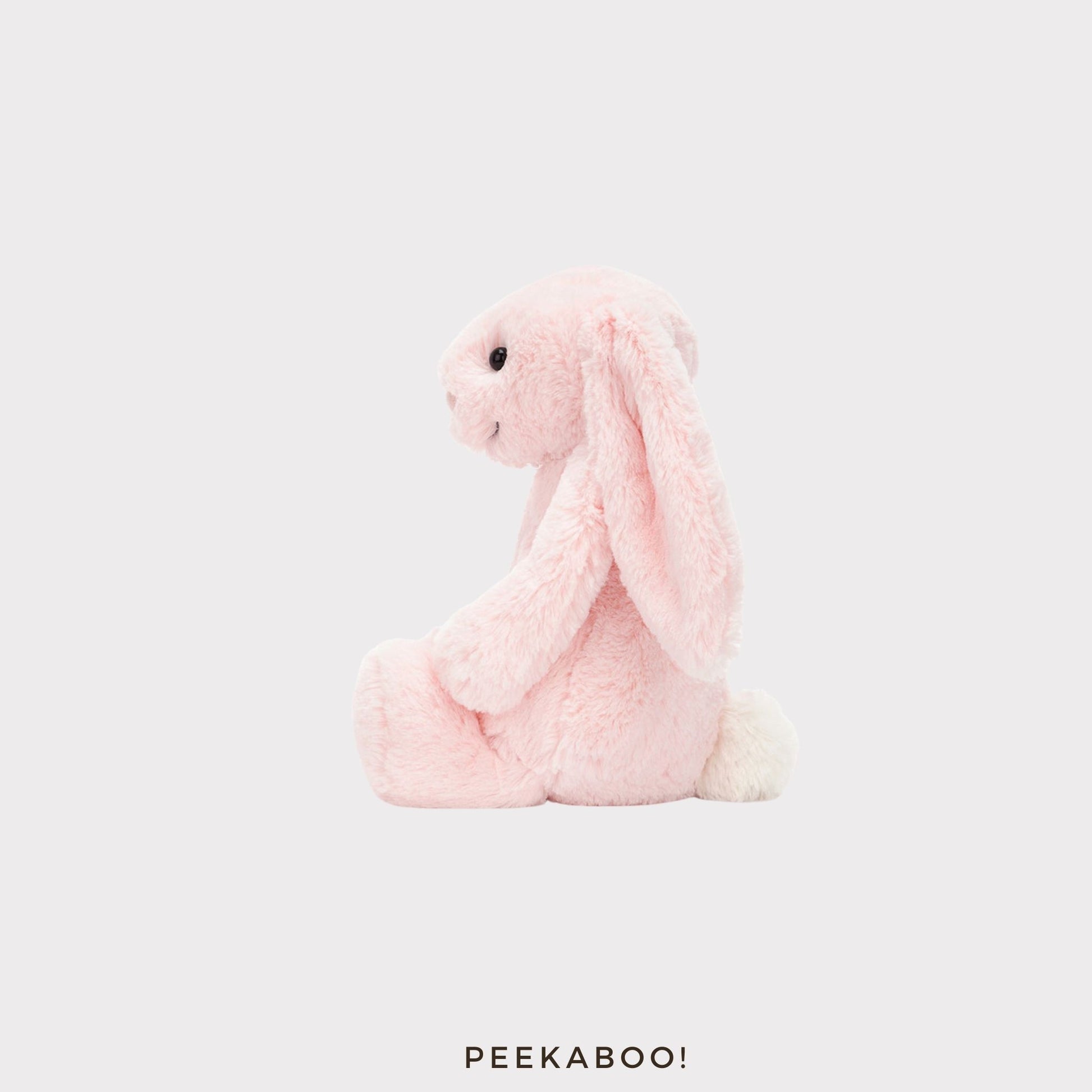Personalised Jellycat Bashful Pink Bunny as unique comfort for babies. Customise it with name and cute pattern to make it truly unique. Perfect for newborn, baby birthdays, baby showers, or cherished moments, this Jellycat combines adorable and personalised design, making it a thoughtful and lasting gift for any occasion.