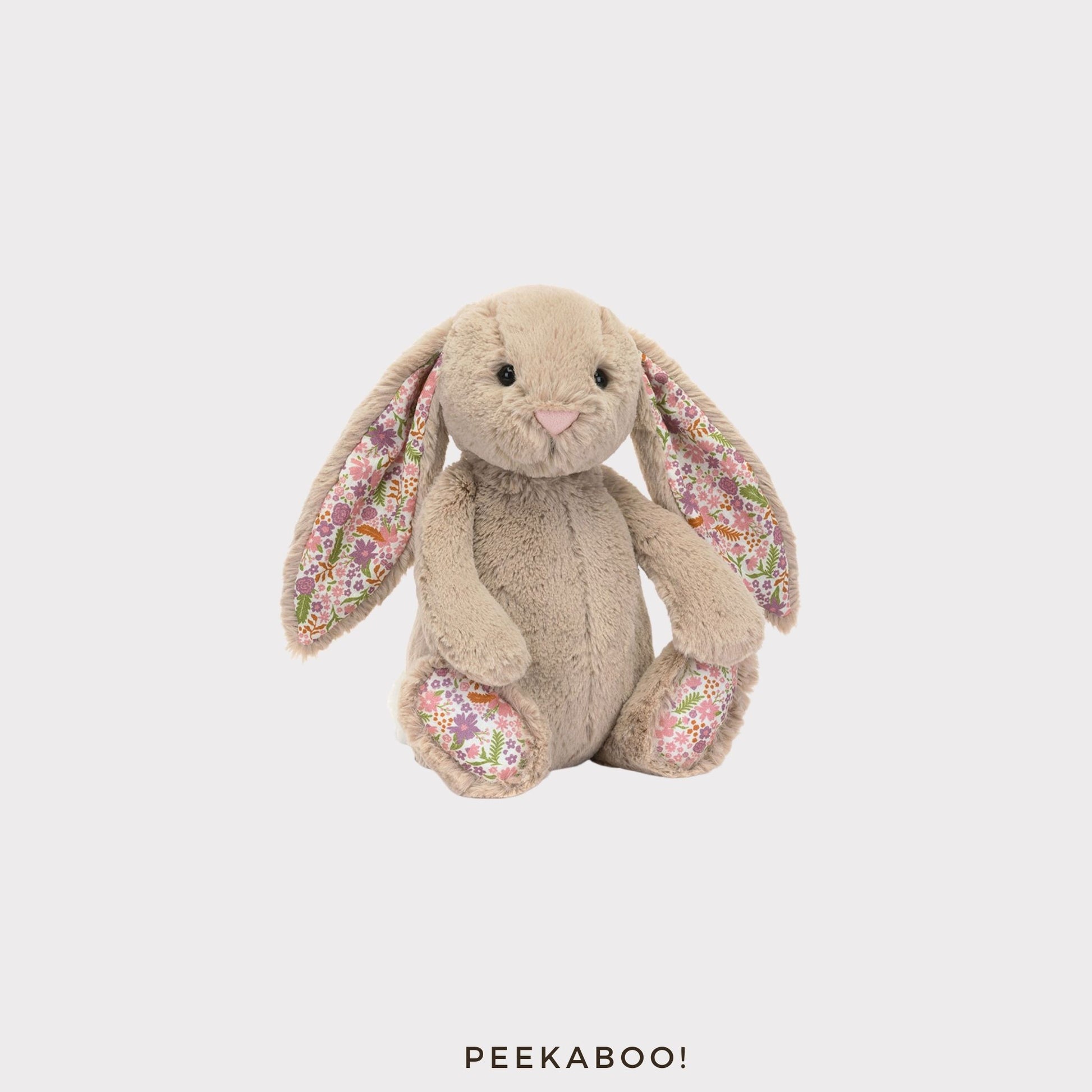 Personalised Jellycat Blossom Beige Bunny 'Petal' as unique comfort for babies. Customise it with name and cute pattern to make it truly unique. Perfect for newborn, baby birthdays, baby showers, or cherished moments, this Jellycat combines adorable and personalised design, making it a thoughtful and lasting gift for any occasion.